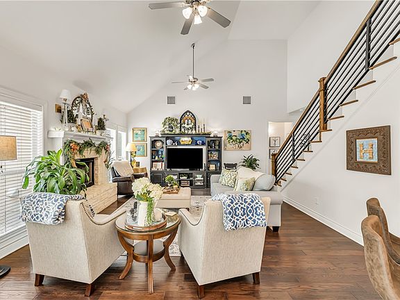 Welcome to luxury living in the heart of Aggieland—just 2 miles from Texas A&M! Tucked inside a prestigious gated community, this stunning residence sits on an oversized lot and combines elegance, comfort, and convenience in one perfect package. With 4 bedrooms, 3.5 baths, formal dining, a cheerful breakfast area, and a designer kitchen filled with custom touches, every detail of this home has been crafted to impress. The soaring vaulted ceilings in the living room frame a cozy fireplace and provide breathtaking views of the backyard retreat, creating a space that feels both grand and inviting.