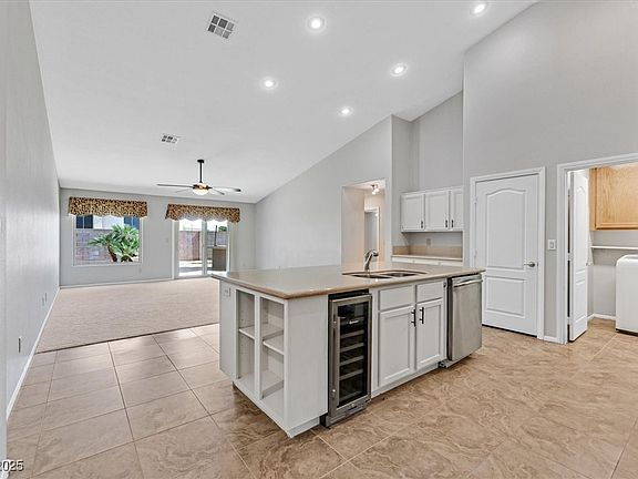 Rare opportunity in Paradise Hills. This wonderful home features Open Floor plan, 20x20 ceramic tile in the entryway and throw-out high traffic areas. Large Primary bedroom is separate from others with sliding doors that lead you to the park like back yard. Newer windows and sliding doors throughout the property. 4th bedroom features built in desk and cabinets. Check out the Climate controlled wine closet. Large 3 car garage with small work area. fall in Love with the back yard with barbeque - putting green and custom lighting.