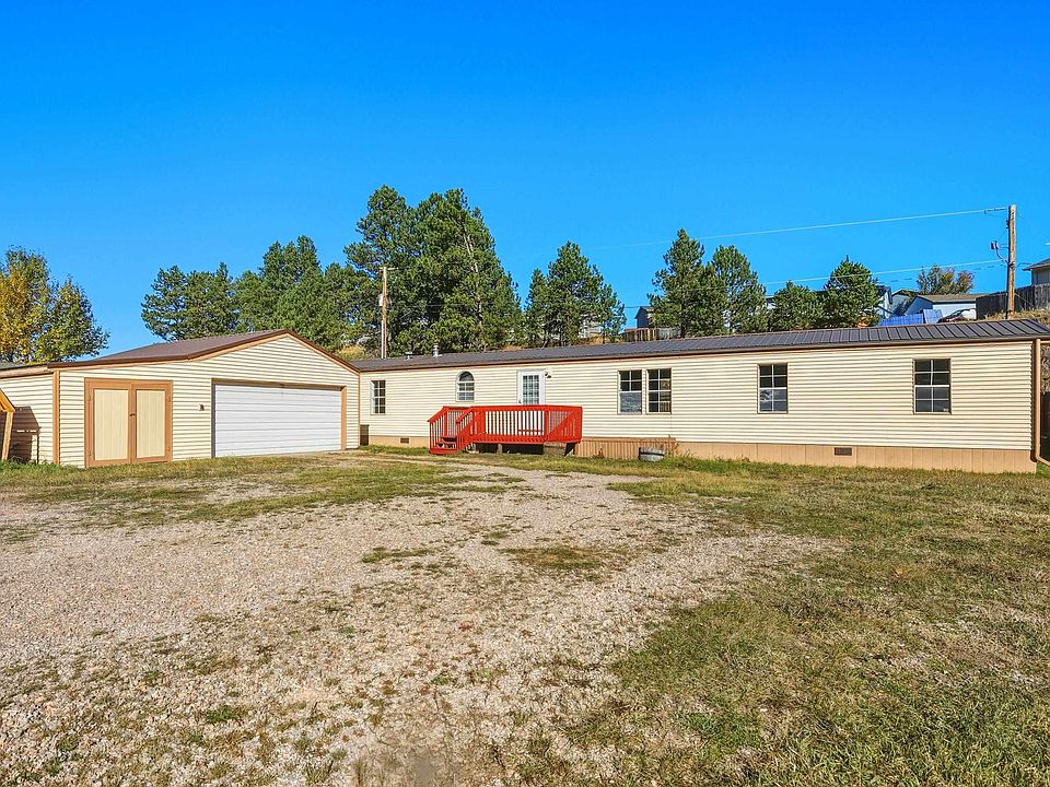 Affordable Living in Beautiful Hill City!! This manufactured home on a permanent foundation has nearly one acre of land and is secluded off the main roadways. The 3 bed 2 bath home was recently renovated with all new kitchen appliances and LVT throughout the home. Large garage with attached shop space. Enjoy the view of the 1880 train from your front porch or living room.