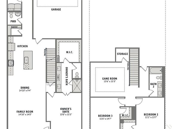 CB JENI HOMES ETHAN floor plan. Our fantastic 30 ft product! 2,244 sq ft, 3 bed, 2.5 bath luxury townhome featuring 10ft ceilings on the 1st floor and a downstairs owner’s suite with spacious bedroom, walk-in closet, and spa-like bathroom with oversized shower and dual sinks. Ideal for entertaining, the chef’s gourmet kitchen opens to the dining and family rooms and includes a large island, pantry, quartz countertops, site-finished cabinetry with hardware included, under-cabinet lighting, stainless steel appliances, pot and pan drawers, and 5-burner gas cooktop. Upstairs offers two large secondary bedrooms with walk-in closets and a huge game room with elegant tray ceiling finish—perfect for family fun or relaxation. Located in Twin Creeks Watters, in the heart of exemplary schools, dining, shopping, lakes, parks, and acclaimed golf courses. Enjoy low-maintenance living with modern elegance. Ready NOW!