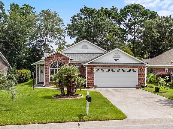 Welcome to this beautiful 3 bedroom, 2 bath all-brick home in the highly desirable Tilghman Forest section of Tilghman Estates in North Myrtle Beach. From the moment you arrive, you’ll notice the charm and quality this home offers, with the entire layout designed on one level for convenience and comfort. Step inside and you’re greeted with soaring vaulted ceilings in every room and rich hardwood flooring that flows seamlessly throughout, with tile in the kitchen and baths. The remodeled kitchen is a true highlight of the home, featuring a brand new stove, nearly new stainless steel refrigerator, dishwasher, and microwave, plus decorative glass inserts in the cabinetry, under-cabinet lighting, and a cozy breakfast nook framed by two oversized palladium half-round windows that flood the space with natural light. The living room offers both warmth and character with a wood-burning fireplace complete with gas logs, making it the perfect spot for cozy evenings. The large master suite provides a quiet retreat with its vaulted ceiling, spacious layout, and private ensuite bath with double vanity and walk-in shower. Two additional bedrooms and a second full bath ensure plenty of space for family or guests. Off the great room, you’ll find a bright and versatile Carolina room that can easily serve as a second living area, home office, hobby space, or sun-filled retreat. Step outside and discover your very own backyard sanctuary, professionally designed by EliteLandscapers. This tranquil space features brick patio pavers, tropical plantings, landscape lighting, and a quiet, private setting that feels like your own hidden escape. Location doesn’t get any better — just a short golf cart ride takes you to some of the most pristine beaches in North Myrtle Beach, as well as to Main Street where you’ll enjoy dining, shopping, festivals, and live entertainment. You’ll also have easy access to golf, boating, and everything the Grand Strand is famous for. As a resident of Tilghman Forest, you’ll enjoy community amenities including a pool and clubhouse. This is more than just a house — it’s a lifestyle in one of the most desirable communities along the coast.