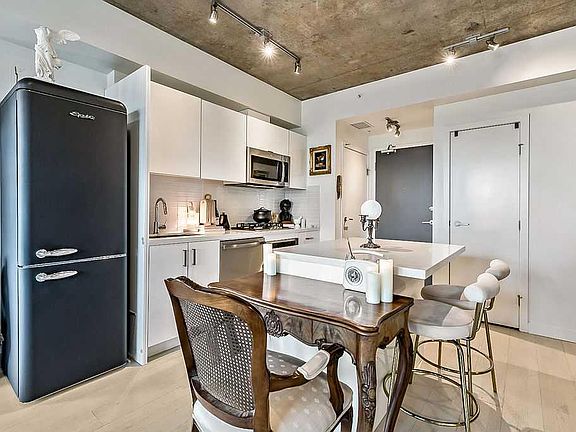 Experience elevated city living at 6th & Tenth, a modern landmark in Calgary’s coveted Beltline. This beautifully designed one-bedroom residence blends clean architecture with quiet sophistication. Soaring exposed concrete ceilings, floor-to-ceiling windows, and unobstructed downtown views create a space that feels open, sunlit, and connected to the city below. A large private balcony extends your living space outdoors, perfect for morning coffee or evening cocktails beneath Calgary’s glowing skyline. Inside, every detail feels intentional: contemporary finishes, sleek lines, and a sense of calm that’s rare in the heart of downtown. The versatile dining area can easily be transformed into a stylish home office or den, offering flexibility to suit your lifestyle. Enjoy luxury amenities including a concierge, fitness centre, outdoor pool, and sky lounge terrace. Located just steps from the city’s finest restaurants, cafés, transit, and parks, this is not just a home — it’s a statement of contemporary urban elegance. Short term rentals are permitted.