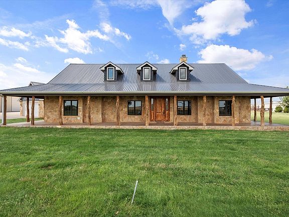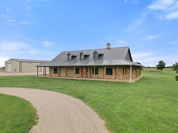 Stunning property near New Home! Amazing curb appeal landscaped w/ numerous trees on drip irrigation & striking stone home w/dormers & wrap-around porch. The 40x85 insulated workshop features a bathroom, laundry hookups, 16' walls & 3 14' garage doors. Eye-catching ceilings in the living room are beautifully adorned with wood beams. A stone fireplace is the perfect accent. You'll love the kitchen w/ gorgeous countertops, stainless Kenmore Pro double ovens & cooktop, & island with prep sink. The basement is large & makes the perfect media space. Upstairs is a loft that would make a great office or place for guests to stay. There is also a 2nd upstairs space - a bonus reading nook accessed in the bedroom hallway. New wood-look tile throughout much of the home & new carpet in bedrooms. Fresh paint throughout the home. The garage is spacious w/ pull-thru doors. Plenty of space in the beautiful back yard to add a pool! Straight out of a dream-come fall in love!