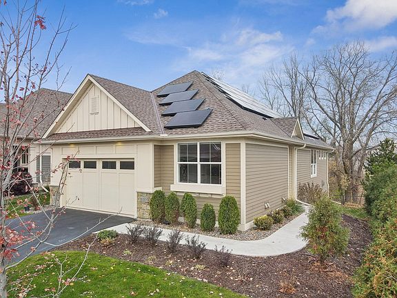 Enjoy single-level living, with all you need on the main floor. The main floor includes living room with access to walk-out, covered balcony. The dining room opens to spacious kitchen with island seating and walk-in pantry. The primary bedroom has primary 3/4 bath and walk-in closet. Down the hall you'll find the 2nd bedroom and full bathroom. The main-floor laundry room and mudroom are conveniently located near entrance to garage. On the lower level you'll enjoy spacious family room with gas fireplace, a wall bar equipped with sink and beverage fridge, and space for entertaining. There are 2 additional bedrooms on lower level with walk-in closets, and nearby 3/4 bathroom. The 2 car garage is heated and provides additional storage space for your belongings. The home has new solar panels and garage door. This home is fully updated and move-in ready!