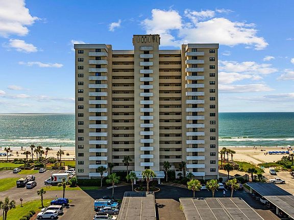 As you make your way through the picturesque neighborhood of Arcadian Shores, past the lake and walking path, you see the ocean sparkling in the distance. Perched up high with breathtaking views of the Atlantic Ocean, you'll find this thoughtfully renovated condo on the shoreline. This oceanfront end-unit with sweeping southern views is offered with all furniture and contents. What you see is what you get. Inside, 3 bedrooms and 2 bathrooms create a retreat that blends comfort with coastal elegance. The heart of the home is the updated kitchen with shell-like quartz countertops, wave-patterned marble tile, stainless appliances, and upgraded cabinetry with soft-close drawers, a pantry with pull-out shelving, and not one but two lazy Susans, to keep everything within reach. It’s fully stocked and ready for evenings of cooking and gathering. The living room French-door slider opens from the center with no frame blocking the outdoor patio, allowing seamless indoor-outdoor living. There are four sliders total, with balconies, each with their own remote-operated automatic shade for privacy. These large glass sliders function like tall windows, allowing in sunlight, views and the breeze. Both bathrooms have been reimagined with quartz counters, updated lighting, and modern vanities. The primary suite bathroom offers a spa-like tiled shower with the look of marble, and the enlarged hall bathroom offers a tiled tub surround and has an extra space for a shelf. Luxury vinyl plank flooring is installed throughout, welcoming sandy feet. All three bedrooms have a ceiling fan to sleep comfortably. A charming shiplap wall sets the tone in the back bedroom, which features bunkbeds with a trundle and another bed to comfortably sleep six. All rooms sleep ten total. With an updated electric panel, LED hallway lighting, two classic pendant lights and coastal chic chandelier, every detail was considered in the renovation. There are three hall closets inside and outdoor storage on both the same floor as the unit and ground level for easy access to all of your beach accessories. Resort style amenities include a beachfront pool with grills and greenspace, tennis courts, security and covered parking. The HOA fee covers your internet, cable, water/sewer, trash pickup, pool, landscaping, pest control, common maintenance, management and security. Arcadian II is a well-maintained building on one of the most coveted beaches, situated behind Arcadian Shores Golf Course. The best restaurants, world class golf, Shore Drive, Tanger Outlets and Barefoot Landing are minutes away, keeping you close to the action, but quietly tucked away by the peaceful shores of Arcadian. Make this your vacation home, investment or primary oceanfront residence.