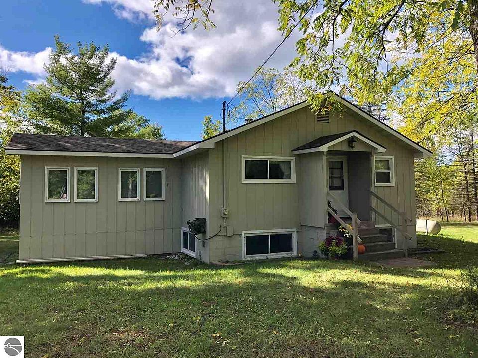 Great location on a county maintained road, close to Glen Lake Schools and just 25 minutes to TC. Cozy and sturdy 2 bedrooms 1 bath. The family room is actually a three season room. Family tells me they use it in the winter as well when visiting. There is a full daylight basement with plenty of windows. Partially finished ready for your touches to create more living area and could have a second bathroom. There is a working toilet down there. It is a triangle shaped lot with over 500 feet on Fritz Road. Room for gardens, chickens, plenty of room to play. Nice deck out back overlooking the woods. 2 garden sheds and a 2-car garage. Widows in main part of home updated in the last 5 years. Total finished square feet includes porch/family room. Room dimensions are approximate and should be verified by buyer.