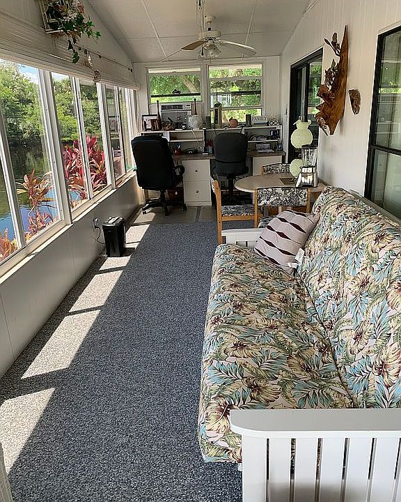 Double wide mobile home with approximately 1100 sq. ft. located in Park Hill Retirement Park on Alligator Creek with access to Charlotte Harbor and the Gulf of Mexico. Dock, boat lift, kayak lift, and two kayaks included.