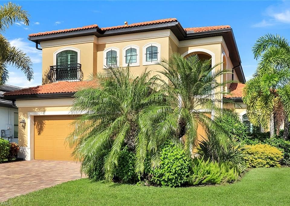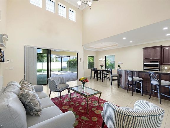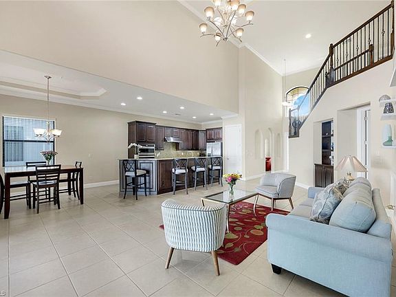 Discover refined living in this stunning two-story home located in the gated community of Palazzo. This spacious residence offers 5 bedrooms + den, 4 full baths, and a 2-car garage, with the primary suite, guest bedroom, and office on the main level—an ideal layout for comfort and convenience. This home welcomes you with soaring ceilings, creating a bright and open feel. The chef’s kitchen features a large island with seating, granite countertops, and premium stainless-steel appliances. Additional highlights include two main-level suites, a mahogany staircase, crown molding, surround sound throughout, and a new HVAC system. Upstairs, you will find three additional bedrooms and a versatile den. The screened lanai with a sparkling pool provides a private outdoor retreat perfect for relaxation or entertaining. Ideal North Naples located near Naples’ beaches, shopping, dining, and cultural attractions, this home offers timeless design paired with modern comfort.
