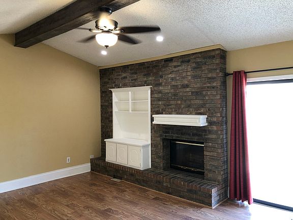 10101 Kay Ridge, 3 bedroom, 2 bathroom, 1334 sqft. Situated on a corner lot with a side entry garage this home offers a lot of curb appeal. The living room has a custom built fireplace place and bookshelf along with laminate floors and lots of room for furniture. Next to the living is the open dining room area with a beautiful built in buffet - perfect for extra storage. The kitchen is nice size and has newer appliances along with freshly painted cabinets. The master bedroom is a great size and can accommodate large furniture along with a nice size walk-in closet and a private full bathroom with a shower attached. The backyard is completely enclosed with a large concrete patio.
