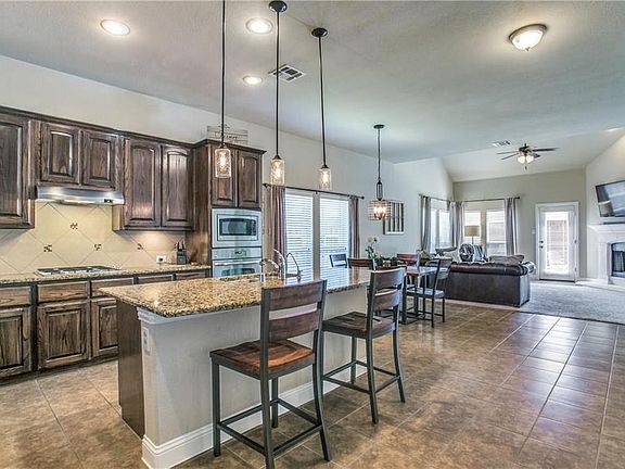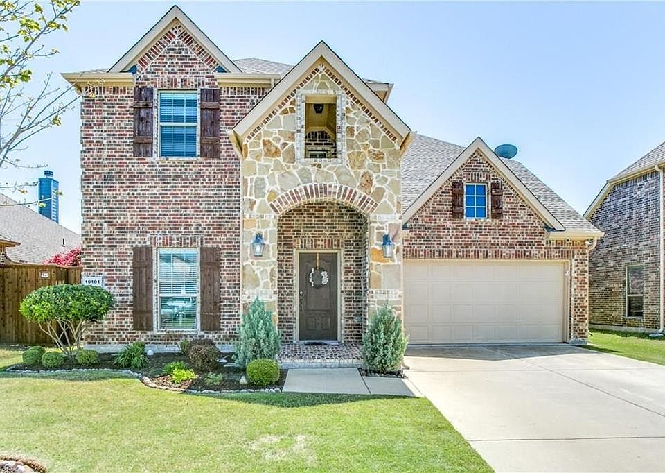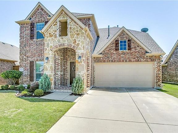 Stunning home in The Reserve at Westridge with Frisco schools! DR Horton's most popular floor plan! The home features a brick and stone facade with a covered front porch and lovely landscaping. Once inside you will find a spacious dining area that is currently being used as a study and tile flooring leading to the kitchen and family room. The chef's kitchen offers granite countertops, stainless-steel appliances, a huge island, gas cooktop, and it's open to the breakfast nook and family room. The family room features a cast stone fireplace, vaulted ceiling, and a wall of windows that overlooks the picturesque backyard with an open patio and recently replaced 8' fence. The master suite is the perfect place to relax after a long day. Upstairs includes a game room, media room, three guest rooms, and two full baths. Great location and a fantastic amenity center with water slides. This is one not to miss!