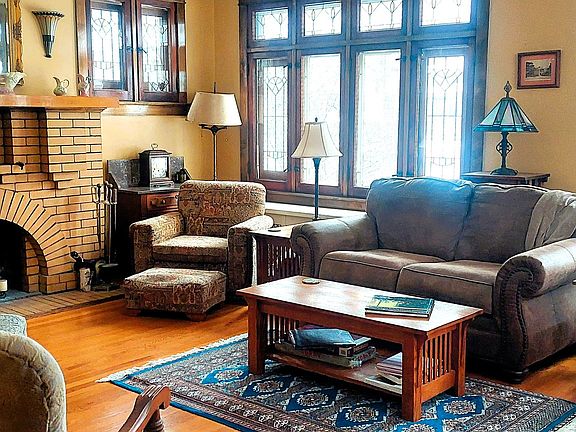 Step into this oversized 1600+ sq ft Chicago bungalow which blends timeless craftsmanship and vintage character with modern comfort, and is situated on a large corner lot. Rich with architectural detail and thoughtful updates, this 3 bedroom home showcases elegant cove molding, stunning original woodwork and hardwood floors, natural wood French windows with wood screens and storms. The welcoming living room features stained glass windows and a woodburning fireplace flanked by more custom lead stained glass windows, creating a captivating focal point. Enjoy the built-in bookcases in this room as well. The large formal dining room is perfect for entertaining and flows seamlessly into a bright and airy sitting room adorned with more French and stained glass windows. The updated kitchen with pantry, redesigned in 2017, opens to a cozy enclosed porch overlooking the large fenced backyard, an ideal retreat for morning coffee or relaxed evenings. The primary bedroom includes a charming sunfilled reading room or office. A laundry area, along with full updated bath and convenient half bath serve the main living areas, while the improved basement offers additional potential for living space. The walk-up attic has plenty of space lending the opportunity for future expansion, or provides exceptional storage. Other notable features include: boiler (2021), lead service line replaced (2023), 2017 improvements include, roof, water heater, a/c unit, updated wiring and plumbing and garage gutters. There is new insulation added in most exterior walls as well as the attic. The brick exterior features aluminum soffits, gutters and fascia making this home maintenance free. This home has been exceptionally maintained and upgraded while preserving its unforgettable historic charm. Along with the expandable option, ideal location and beauty, this is an exceptional opportunity for todays homebuyers.