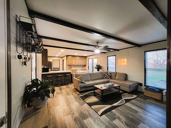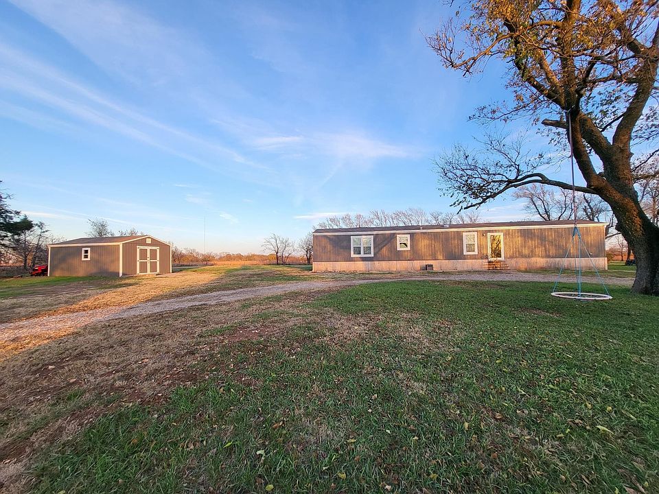 Are you looking for a little room to spread out? Look no further! This new home sits on almost 5 acres with great views of the sunrise and sunset! Open floor plan with stainless appliances, split bedroom plan, larger storage shed with a storm shelter built in it are just a few of the perks you will find with this property! Great accent wall in the living room to house the TV and other collectibles plus the built in hutch in dining area are a few of the favorites of the current owner. Master bedroom has a walk in closet, plus an en suite bath with separate soaker tub, shower and double sinks. What are you waiting for? Call me to schedule your private showing today!