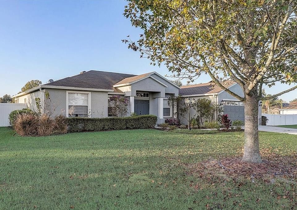 Huge private fenced lot with room to roam!! You will be excited when you enter this home and see the property that is large and ready to make yours. So many upgrades and a great floor plan! As you enter you will see the gorgeous hardwood floors, French doors to the den, and formal dining to your right. Walk through the living room into a very upgraded kitchen with 2" Cecelia Gold granite countertops, 42" maple cabinets, stainless steel appliances and lovely backsplash. The family room has a wood burning fireplace with mantel and expanded ceiling and access to the large Lanai. Master bedroom is expansive with Walk in closet, dual sinks, garden tub and separate shower and French doors to the lanai. Lighting in the home is all upgraded with 6 ceiling fans. The home is pre-wired for surround sound. Breakfast area has chair rails and wainscoting. Great location with easy access to both I-4 and I-75. Call for your private showing!