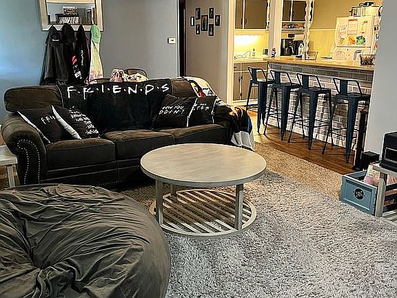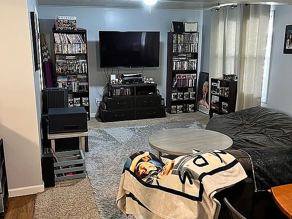 3 bedroom, 1 updated bathroom, a walkthrough closet, open living room, kitchen with bar/island, laundry room with storage and pantry shelving, and sun room gives access to a beautiful back yard and side yard. Large spacious blacktop driveway, lots of attic space, small shed, newer roof, and freshly painted rooms.