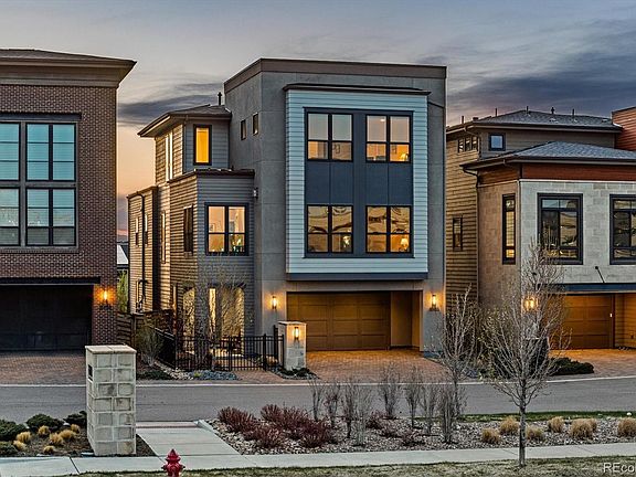 Look no further!! Exemplary contemporary living lifestyle in Lone Tree. Enjoy the stunning Mountain and City views in a remarkable walkable location near coffee shops, restaurants, Lone Tree theater, library, light rail, medical, parks/trails, recreation/community center and all the amenities Lone Tree offers. This sophsticated executive style home offers a luxurius, low maintenance lifestyle backing to open space. Combine luxury finishes with an open floorplan and 3 stunning levels with an ELEVATOR for convenience. The Main level offers the ultimate livingroom with soaring windows capturing the Rocky Mountains, city views and a two story contemporary gas fireplace and separate dining area. The spacious and sleek kitchen open to living and dining areas features top of the line Kitchen Aid stainless appliances. Under cabinet and pendant lighting accent the smooth quartz counters, wood cabinets with pull-out shelving, pantry and a large center island. The Primary Suite has a gas fireplace, five piece bath with a soaking tub and walk-in closet. Office, laundry and powder room complete the main level. Enjoy sunsets, mountain and city views from the covered deck complete with firepit. The upper level offers a loft with spectacular views and overlooks the living area below. Full bath, two bedrooms and a 2nd laundry complete the upper level. A unique glass-enclosed office and wet bar plus the 4th bedroom on the lower, entry level has mountain views and access to the covered patio. Whole house water conditioning system, gallery art system, solar screen are just a few of the many upgrades. Three car tandem garage is complete with custom Container Store ELFA shelving. This smart automated home complete with TESLA solar panels for green energy sits in the heart of Lone Tree with access to the hiking trails in Bluffs Regional Park. Lone Tree has created an incredible town feel in Ridgegate where you can enjoy luxury living in this impressive and automated contemporary home.