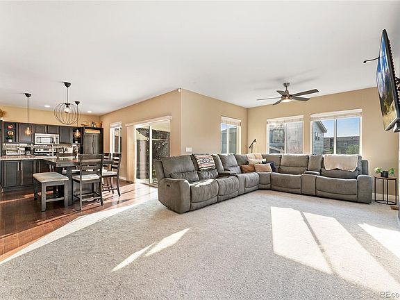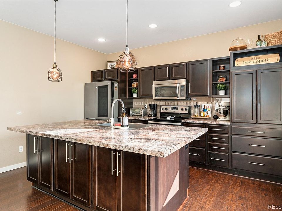 Welcome to this inviting contemporary home where comfort and convenience come together seamlessly. Fresh interior paint and new carpet make it move-in ready, offering 3 bedrooms, 3 baths, a spacious great room with a cozy fireplace, and a versatile loft perfect for family living or entertaining. The welcoming entryway opens to a private office, powder bath, and stairway, setting the tone for a home designed with both function and style in mind. The kitchen is the heart of the home, featuring rich espresso cabinetry, stainless steel appliances, and a large island—all flowing effortlessly into the light-filled great room where friends and family can gather around the fire. Upstairs, the primary suite is a relaxing retreat with a walk-in closet and private 3/4 bath, while the loft provides additional living space near the secondary bedrooms and convenient upstairs laundry. The unfinished basement is ready for your personal touch, offering room to grow. Step outside and enjoy the lifestyle this community offers—two recreation centers, scenic walking trails, and a neighborhood school right across the street, making busy mornings a breeze. Commuting is just as easy with quick access to E-470, only 15 minutes to DIA, 10 minutes to Prairie Shopping Center, and 20 minutes to the Peña & 61st A-Train Station. This home truly blends everyday comfort with a vibrant community lifestyle.