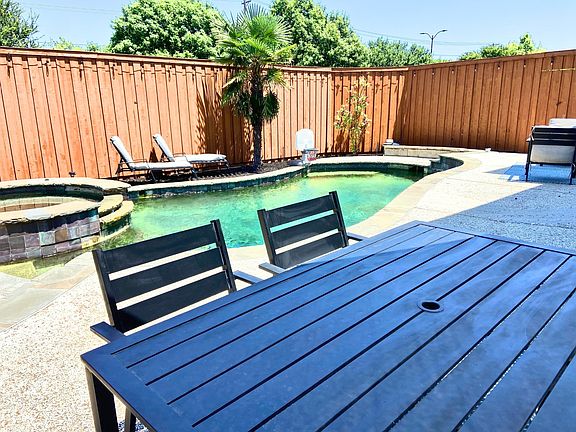 Totally updated gorgeous pool home in the heart of Frisco! Large front yard with beautiful mature trees is so welcoming. New light-colored LVP flooring throughout the first floor. The media room with barn doors could be used as a game room or an office! The backyard features a heated pool and spa combo with privacy wood fencing all around.