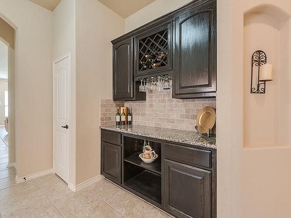 Like new and ready for move-in! Beautifully appointed one-story with an open floorplan in sought after Frisco ISD. The gourmet island kitchen features a custom vent hood, black stained cabinets, tumbled stone backsplash, gas cook-top, granite counters and stainless appliances. Other upgrades include: rubbed bronze hardware, 17x17 tile, wood flooring in formal dining, granite counters in baths and built-in wine hutch with buffet. Refrigerator, washer and dryer to convey. Awesome community amenities center with 4 pools and 2 slides, pond and hiking trail.