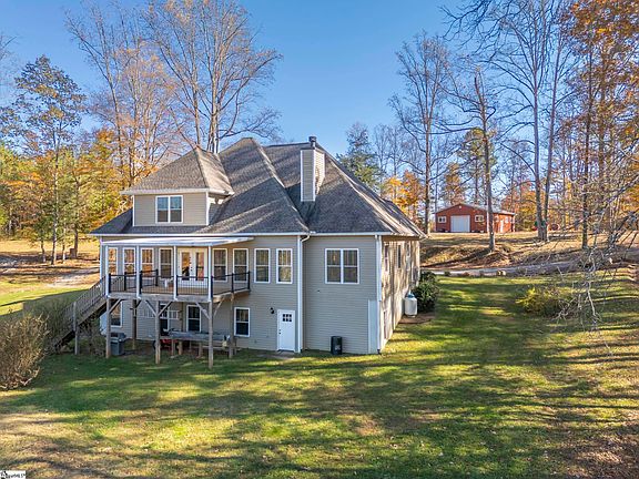 A rare Polk County property combining river frontage, equestrian potential, and near-zero energy costs in a serene, turnkey mountain view estate setting. Experience modern comfort, energy independence, and natural beauty on this 38-acre Green River estate. Built in 2019, this 4 BR / 3.5 BA custom home features dual primary suites (main & upper), open living spaces with wood floors and a granite hearth fireplace with mantle of hickory cut and milled on the property. The granite kitchen with Induction range enjoys a big walk-in pantry with sink and prep counter. A full basement is plumbed & framed for finishing, with wall of windows to enjoy the outdoors. Enjoy nearly 1,000 ft of river frontage with a natural rapids, and five-to-six acres of river-meadow suitable for horse pasture. Morton-built barn, 30×42 workshop, and equipment garage provide outstanding functionality. A 72-panel solar array with Generac battery storage powers house—recent REMC bills average under $60/month total, including barn on a separate meter. Wide trails wind throughout the wooded acreage, ideal for riding or ATVs. Skyrunner internet & DISH TV deliver reliable service. Private easement driveway ensures seclusion just minutes from Tryon, Columbus, and Lake Adger.
