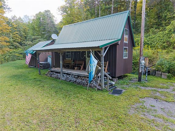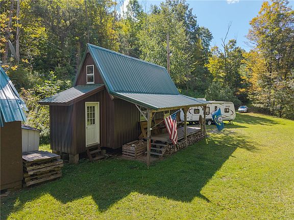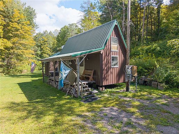 Explore this beautiful property located between Naples and Cohocton, on a quite rural road, with 46.60 mostly wooded acres. The cozy Cabin has a covered front porch, Electric, Woodstove, Sleeping Loft, 1.5 detached Garage, Storage Shed and a convenient continuous natural running Spring for water. There is also a year-round stream, pond, and several Apple, Cherry, and Pear trees. The property has trails perfect for hiking or ATVs. This is an ideal spot to enjoy evenings by the Firepit while listening to the soothing stream. Whether you’re seeking a hunting camp, a family retreat, or the perfect spot to build your dream home, this land offers endless possibilities! *** Property Listed "AS IS". RV & ATV"S NOT included in sale ***.