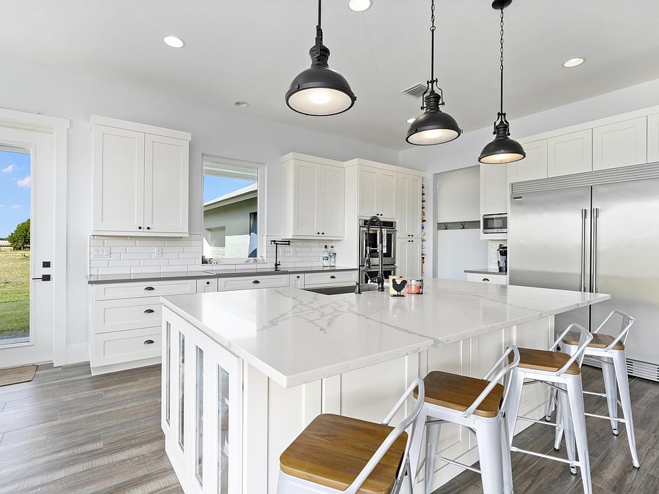 Gorgeous Modern Farmhouse on 2.5 acres with convenient close to town location!Custom 3/2.5/2 With 4th bedroom or office. This home will not disappoint. This energy efficient CBS home was built in 2018. Including impact windows and doors, spray icynene insulation and whole house tankless water heater. House is prewired for a whole house generator with 500 gal propane tank. No upgrades were spared here. Beautiful gourmet kitchen with Quartz counters, double convection oven, induction cooktop with pot filler, plus a huge commercial refrigerator. Whole house central vacuum, Spa inspired master bath with freestanding tub and rock shower, Jack and Jill kids bath and huge laundry/mud room with slate tile. Virtual tour available.