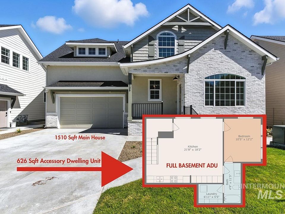 NEW PRICE! Beautiful single family home with BASEMENT ADU. Discover this beautifully crafted single-family home that offers exceptional flexibility—perfect for multi-generational living, income generation, or future expansion. The thoughtfully designed floor plan includes a fully equipped 1 bedroom, 1-bathroom basement ADU, ideal for short- or long-term rental to help offset your mortgage. Alternatively, enjoy the home as a spacious 4-bedroom, 3 bathroom residence featuring dual kitchens and laundry rooms. The main home boasts an open-concept great room centered around a stunning fireplace, seamlessly flowing into a cozy kitchen complete w/ SS appliances, granite countertops, and a generous wall pantry. Primary suite on the main level w/ shared main level bath. 2 more bedrooms upstairs w/ versatile loft-style living area. There are 2 more homes to choose from if this floor plan does not fit your needs. All homes have the wonderful ADU option.