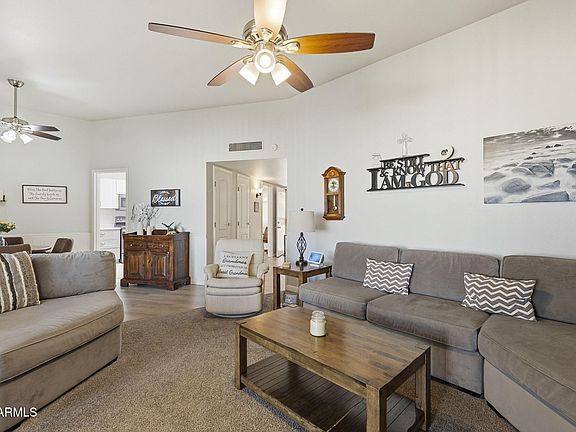 Beautifully remodeled 2-bed, 2-bath home in the heart of Sun City an active adult community! This UPDATED home features an open floor plan with modern finishes t/o including UPDATED kitchen cabinets, counters, SS appliances, updated lighting, New vanities in bathrooms, tiled shower in mst bth, laminate & carpet flooring. NEW AC 8/23. Solar panels for energy-efficient low cost living! The 1-car garage offers convenience and extra storage. Located near top-tier amenities including golf, recreation centers, and social clubs. Move-in ready and waiting for you!