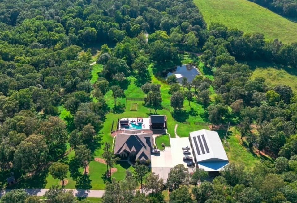Luxury, privacy, & year-round beauty, minutes from Bentonville. 19.8 +/- acres. Fully furnished, 5 bed, 4 bath main residence features 4,220 SF w/ dedicated office, theater room. Gourmet kitchen boasts custom cabinets, center island, granite countertops, double oven, 2 walk-in pantries. Primary suite includes trey, lighted ceilings, spa-like ensuite bath, closet open to laundry room. Trifold glass living room wall opens to covered, retractable, fully motorized terrace. Fully fenced in-ground pool includes swim-up bar & waterfalls. 672 SF detached, loft style apartment offers rental opportunities & 672 SF furnished gym space. 4800 SF shop; 2 car lifts, 2 pull-through bays, & solar panels. Outdoors; fire pit, hot tub, chicken coop, green house, stocked fishpond, pasture for small livestock. Home on front 10 +/- acres. Remaining 10 +/- acres includes new road access, detention pond w/ development potential for multiple home sites, water & electricity close. Centerton water, private line. Well serves sprinkler system.