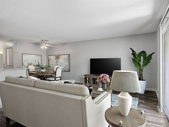 2 Bedroom/2 Bath 954 sq ft, Very Spacious and open floor plan includes large living room, dining room, galley kitchen complete with full size refrigerator, gas range. Master bedroom features large walk in closet. Extra storage located on private patio or balcony. Central heat and air conditioning.