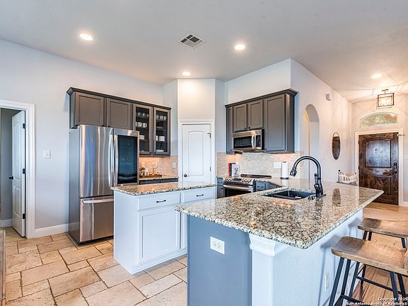 Welcome to peaceful Hill Country living with city conveniences just minutes away. Perfectly situated between Bee Cave and Dripping Springs (just 10 minutes to either), this well-maintained home sits on a generous 0.37-acre lot with a low tax rate, offering both space and character inside and out. This thoughtfully designed home features 3 bedrooms, 2.5 baths, blending comfort and functionality for everyday living and entertaining alike. The fully fenced backyard includes two gated sections: one currently used as a garden, the other a versatile pen with a drive-in gate. At the rear of the property, a sunken fire pit offers a private retreat where you can relax and watch deer gather around your own feeder. An expansive covered deck overlooks lush greenery and captures some of the most breathtaking sunsets in the area-perfect for outdoor living. Inside, the home features limestone & wood floors, granite countertops, upgraded stainless steel appliances, and a flowing open concept layout connecting the kitchen, dining, and living areas. The kitchen includes under/above cabinet lighting, a center island, and a large window looking out to the backyard. The living room features a limestone wood burning fireplace, large windows, and remote controlled top-down bottom-up shades, letting you set the perfect mood, whether you're watching the sunset or enjoying a cozy evening by the fire. Located in the highly regarded Lake Travis ISD. No HOA, but a voluntary neighborhood association offers access to stocked bass fishing, a lakefront park with trails, a playground, tennis/basketball courts, and a variety of community events. Whether you're sipping coffee on the deck at sunrise or winding down around the fire pit, this home is built for moments that matter. Enjoy nearby shopping, dining, and wineries, plus quick access to Austin or the Hill Country. This is more than a house-it's a lifestyle.