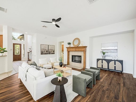 Welcome to 10109 Chestnut Ridge Rd, a 4-bedroom, three full bath home in the popular Canyon Creek neighborhood. The entryway greets you with a grand cathedral ceiling. The semi-open floor plan on the first floor perfectly balances flow and separation, featuring an elegant formal dining room with panel and crown molding, a living room with a cozy fireplace, and a kitchen with granite countertops. The first floor also includes a guest bedroom and a full bath. On the second floor, you’ll find the primary suite, which includes double vanities, a separate soaking tub and shower, and a generously sized primary closet with a lovely window. In addition, there are two more guest bedrooms, a guest bath, a game room, and a bonus space with tray ceiling details. Fresh paint and many updated light fixtures make this one shine. Residents of Canyon Creek enjoy top-rated Round Rock schools with an Austin address, along with community amenities including a pool, clubhouse, multiple parks, nature trails, basketball, and tennis court, and a location that gives easy access to Lake Travis, Balcones Canyonlands Preserve, Lakeline Mall, The Domain, The Arboretum, and shopping, dining, and entertainment.
