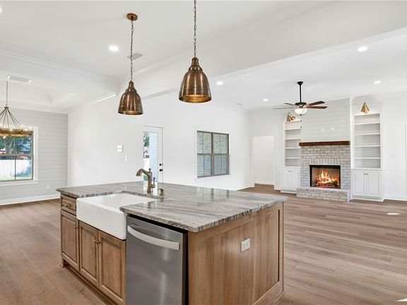 Step through the front door of this GOLD Fortified Prime Design Home and immediately feel the warmth of French Country charm paired with modern luxury. Sunlight fills the foyer, leading to the open living area anchored by a brick fireplace with custom built-ins and vintage brass lighting a cozy space to gather. The flow continues into the chef-inspired kitchen, where quartzite countertops, custom cabinetry, and an artisan-finished Vent-A-Hood create a timeless, curated look. The island invites lingering over morning coffee or evening conversation, while the adjacent dining area glows beneath an 8-light chandelier with French Country shiplap accents. Down the hall, the primary suite is a peaceful retreat. The spa-like bath features dual vanities, premium quartz countertops, an oval soaking tub, and frameless glass shower. Three additional bedrooms and two full baths offer comfort and privacy, with practical touches like a laundry sink, third-rack dishwasher, and tankless water heater. Outside, louvered shutters, cedar corbels, V-groove porch ceilings, and antique copper lighting continue the home's story, showcasing craftsmanship and curb appeal. Additionally, take advantage of up to $5,000 in buyer incentives (with Seller’s Preferred Lender), which can be used towards a rate buy-down, closing costs, or additional upgrades. The seller will also include a Whirlpool stainless steel side-by-side refrigerator. This isn't just a home - It's Prime Living.