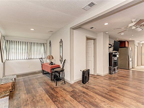 Beautifully renovated home in the City of Bradenton. Fully fenced in, including gated driveway. Enter the front door into a bright, enclosed porch/bonus room with several windows. This room could also be used as a dining room. From here, home is open concept through living room to kitchen. Kitchen is new with all new stainless steel appliances and solid wood cabinets. Master bedroom has an exit door to side deck which connects to the huge (28' x 18.5') deck on the back of the house, perfect for entertaining and barbecuing. The Southeast corner of the deck has been specially reinforced to hold a hot tub. Both bathrooms are gorgeously remodeled with the walls completely tiled. Recessed lighting throughout most of the house. New in 2019: Roof, A/C, Hot Water Heater, Electrical Panel, Doors, Windows as well as all appliances and flooring. Home is being sold completely furnished, including electric fireplace, all TV's, stereo and speakers.