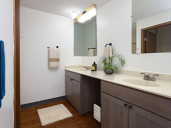 Light wood flooringFresh coat of paintNew bathroom vanities