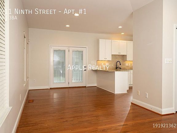 3 BR, 3 BA, 2 story town home in Ninth St Commons features an open floor plan w/ cathedral ceilings in the great room. Kitchen details: Granite countertops, natural stone backslash, white shaker style wood cabinets, butlers pantry, countertop seating as well as separate dining area, under cabinet lighting, all new stainless steel appliances including stove, microwave, refrigerator, dishwasher, washer & dryer. Spacious Master bedroom with private bathroom. Natural wood flooring throughout unit. Bathrooms: Brushed nickel fixtures, granite countertops and tile floors in showers and/or tub surround. Central heat and air - all electric. Off-street parking. Convenient to Duke, Ninth St dining & shopping, VA Hospital, and everything Downtown Durham has to offer!