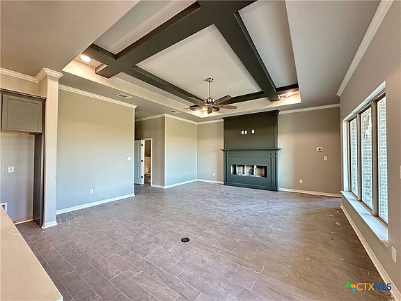 This beautiful home offers over 2,300 square feet of living space with four bedrooms, two and a half bathrooms, and a three-car garage. The open layout features statement ceilings and a cozy electric fireplace, creating a warm and inviting atmosphere. The kitchen includes a large island, soft-close cabinetry, quartz countertops, and plenty of room to gather. The private master suite boasts an oversized walk-in closet and a relaxing layout. Energy-efficient spray foam insulation and ceiling fans throughout help keep the home comfortable year-round. A fully landscaped yard is included, ready for outdoor enjoyment. Located in the sought-after Hartrick Valley community, just minutes from top-rated Academy ISD schools, shopping, dining, and BSW Hospital.