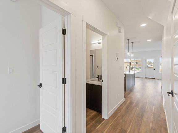 The Sapphire, a jewel of a home at 1615 sq ft, emphasizes smart design and functional living for the modern family. With 9' ceilings on the main floor, durable LVP flooring sets a stylish foundation. The kitchen offers a flush island eating ledge with Silgranit undermount sink, Quartz counters, OTR microwave, tiled backsplash, upgraded “Winston” cabinet profile, and a large corner pantry. A main floor bedroom sits beside a 3-piece bath with walk-in shower. Pendant lighting and large windows in the living room and nook create a warm, bright space, with easy access to the yard through a central garden door. Upstairs includes a relaxing bonus room, primary suite with walk-in closet and 3-piece ensuite, two additional bedrooms, a 3-piece bath, and laundry closet for stackable washer/dryer. Black plumbing and lighting fixtures, separate side entry, 9' ceilings on both main and basement levels, and basement rough-in are included. The Sapphire blends practicality with elegance throughout.