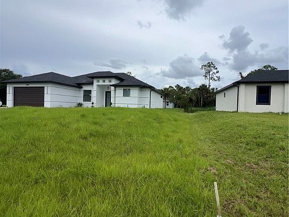 MOTIVATE SELLER. This beautiful brand new home is located on a Quarter Acres of Lehigh Acres FL, and built with care and dedication. We offer CLOSING INCENTIVES! This luxurious new construction home combines modern elegance with thoughtful design.Nestled in a serene neighborhood, this stunning 3-bedroom plus den, 2-bathroom home boasts a spacious open floor plan, perfect for both relaxation and entertaining. The home has impact resistant windows and impact resistant doors for storm protection. As you enter, you're greeted by soaring ceilings and an abundance of natural light that creates an inviting atmosphere throughout. The heart of the home features a chef-inspired kitchen with high-end stainless steel appliances, quartz countertops, and a large island, ideal for casual dining and gatherings. The expansive living area flows seamlessly into the dining space, showcasing beautiful finishes. This space is perfect for hosting friends and family. The master suite is a tranquil retreat with a spacious layout, walk-in closet, and an en-suite bathroom featuring dual vanities, a soaking tub, and a glass-enclosed shower. Two additional well-appointed bedrooms offer ample space and comfort. The bonus den provides endless possibilities—perfect for a home office, playroom, or guest space. Enjoy the spacious backyard, ideal for outdoor entertaining and plenty of space for a pool. Schedule your private showing today and experience the lifestyle you’ve always dreamed of! You won’t be disappointed, Won’t last long