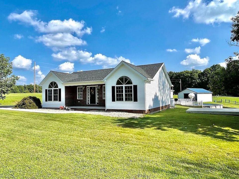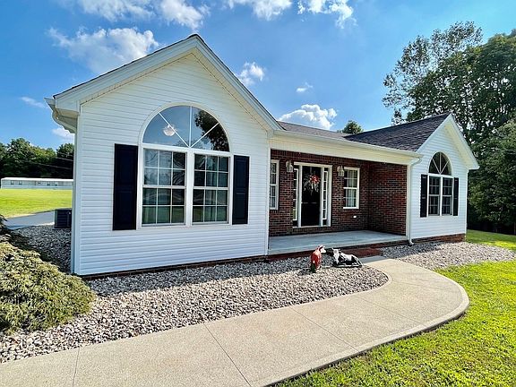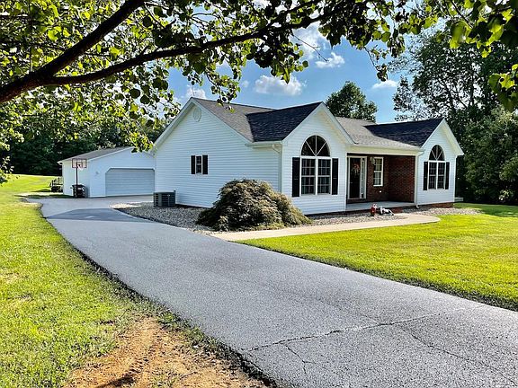 TURNKEY MINI FARM! This home has seen so many UPDATES in the last year; new shingled roof, vinyl siding, soffit & gutters, all new covered porch with composite decking. Inside the home has been freshly updated with a brand new kitchen, new stainless steel appliances, luxury plank flooring, upgraded bathrooms, crown moldings, & so much more! 24x24ft detached garage adjoining a new 27ft round swimming pool with new wood deck. The property is fenced with woven wire & has sheds in each field perfect for horses and features a large STOCKED POND. 30x40ft cathedral trussed barn with stalls.