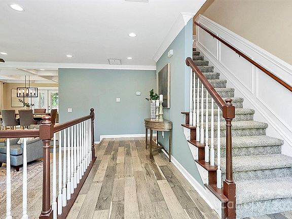 Charming updated home on large cul de sac lot in prime Matthews location close to downtown, park, and Matthews Elementary, as well as the Brace Family Y! New windows and doors in last 5 years. Bathrooms updated Spring, 2025. Kitchen updated 2024 with custom cabinets, new countertops new dishwasher and range. Refrigerator is approx 3 years old. Rounding out the main level is an inviting family room outfitted with a cozy fireplace, dining room, breakfast area and laundry room. 3 generous bedrooms plus a giant bed/bonus room top it off upstairs! In the primary suite enjoy the luxurious spa bath with stand up shower and a soaking tub! Custom accent wall in one bedroom. This home offers lots of space for family and a home office too! Great yard for outdoor activities plus a large screen porch and a comfortable deck. Fresh paint throughout. Fireplace sold as-is with no known issues. Neighborhood has a community pool.
