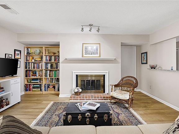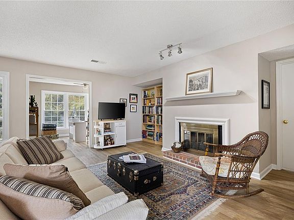 Enjoy tree-lined tranquility in this top-floor end unit offering privacy, natural light, and peaceful views of green space leading to Ward Creek. The inviting sunroom or home office overlooks a wooded area where deer often wander, a quiet, natural escape just minutes from Marietta Square. Inside, an open-concept plan centers on a comfortable family room with a fireplace, creating a warm gathering space that flows seamlessly into the kitchen and dining area. Neutral paint, updated lighting, and luxury vinyl plank flooring provide a modern, cohesive look throughout. The updated kitchen features granite countertops, ample cabinetry, pantry, and a laundry closet. The split-bedroom layout ensures privacy, with a spacious primary suite featuring an ensuite bath and walk-in closet. The secondary bedroom also includes a walk-in closet and direct access to a full hall bath. Covered patio extends the living space outdoors, perfect for reading, relaxing, or enjoying morning coffee while surrounded by nature. Community amenities include a swimming pool, plentiful parking, and beautifully maintained tree-lined streets and common areas. Located within minutes of Marietta City schools, Laurel Park (0.5 mi), Whitlock Ridge Trailhead (0.7 mi), Marietta Square (1.2 mi), Kroger and Publix shopping, and GA-120 access (0.4 mi), this location blends comfortable living with nature at your doorstep and easy access to Marietta’s favorite destinations!
