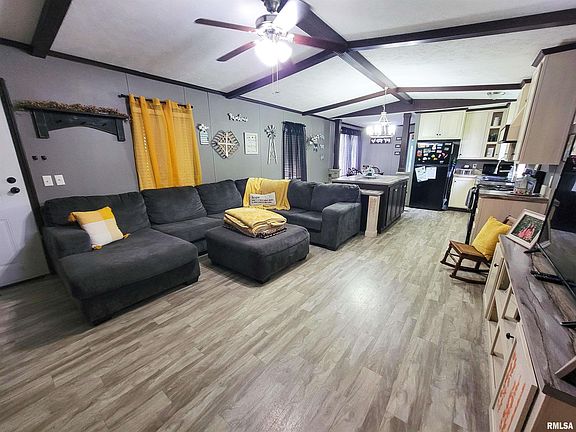 Beautiful Manufactured Home on almost 7/10th's of an acre with an In-Ground Storm Shelter. This home has an Amazing kitchen & bath! Built in 2017, this 1312 sq. ft. 3-bedroom, 2-bath home sits on an oversized 84 X 330 lot that has plenty of room to build that large shop that you have always wanted! This yard is HUGE, and the sunroom is perfect for those Summer evenings. The living room is open to the kitchen and the kitchen looks like it should be in a MILLIONDOLLAR HOME with a vaulted ceiling, wood-like beams, custom cabinetry, and a sprayer sink. The oversized kitchen island has plenty of under-counter storage and is a family social area. Cook, visit, and enjoy this open living area, but wait, there is MORE! The Primary Bedroom is spacious with a nice-sized walk-in closet and an Amazing Private Bath. The Master Bath has a double vanity with plenty of storage, a corner cabinet, and a HUGE slate-tiled shower that is unbelievable! On the opposite end of the home, you will find 2 more bedrooms, another full bath, and a convenient laundry area. The front of the home has a fantastic 28 x 8 screened room that is perfect to enjoy all year round. The long ramp out front runs down to the metal carport and the circle driveway for easy parking, access, and exiting. It is hard to find any home at this price point, and definitely hard to find one that has as much to offer as 1011 Clan. Inside or outside, this home is one to put on your must-see list. Give our office a call today.