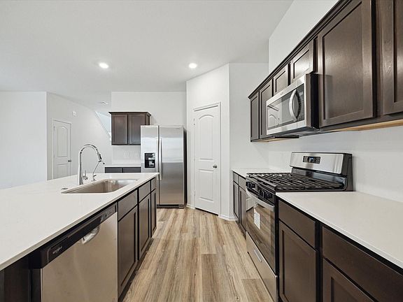 Stunning Brand New 5-Bedroom Home in Legacy Park II Ready for Move-In! This beautiful, light-filled 5-bedroom, 3-bathroom home offers an open and spacious layout, perfect for modern living. The gourmet kitchen flows seamlessly into the living area, featuring ample quartz countertops, plenty of cabinetry, and a walk-in pantry for all your storage needs. The guest bedroom is conveniently located on the first floor, while the master suite upstairs boasts a luxurious ensuite bathroom and a large walk-in closet. Upstairs, you'll also find three additional well-sized bedrooms and a generously-sized game room, ideal for relaxation or entertainment. This wonderful home also comes equipped with a washer, dryer, and refrigerator. No smokers, please. Pets will be considered on a case-by-case basis.