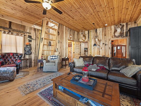 Secluded and peaceful, this custom wood cabin sits on 142 acres of pure privacy. Enjoy a large wraparound porch, 2 bedrooms, 1 bath, central heat and air, Wi-Fi, and a tankless water heater. The property includes 5 deer food plots, 5 deer stands, and 3 wells on the property—ideal for outdoor enthusiasts. A 60×42 barn and 12×40 greenhouse offer ample space, and the entire home can be powered by a generator. A rare blend of comfort, nature, and self-sufficiency.