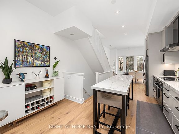 Stunning, Spacious, Fully Custom Renovated to the Highest level 2-Bedroom 2-Bathroom Townhouse with Smart Home, direct garage entrance and outdoor deck. This one of a kind Townhouse is packed with features and is a rare rental opportunity. Bright and beautifully maintained home offers 1,300 sq ft of indoor space and an additional 120 sq. ft deck. The garage is located on the ground floor with direct access to your home, and with an enclosed laneway, you don't have to worry about going outside to get into your car. The entry foyer also features a powder room and a large coat closet. The main living space sits above street level, offering privacy and opening up the space to be filled with the sun. The open concept space has 10ft ceilings making it airy and spacious with an electric fireplace offering a touch of elegance. Leading upstairs, the top floor is illuminated by skylight, features 9 ft. ceilings for spacious feeling and two large bedrooms, each with its own closet, generously sized for any use of space. The top floor also features a 4-piece ensuite boasting a soaker tub and glass-enclosed rain shower and washer / dryer. FEATURES: The exceptional interior has European oak flooring throughout, a custom Bella kitchen with new appliances (Fridge, Induction Stove, B/I Microwave, Dishwasher), Napoleon BBQ and motorized blinds. Home comes with 1GB Fibre internet, Smart TV and Sonos sound system, and is fully smart home enabled - thermostat, lights, lock can all be controlled by voice or your mobile device. LOCATION: Located in the heart of Riverside / Leslieville it is a short stroll from trending cafes, award-winning restaurants, boutique shops and lush parks. With easy access to transit, top schools, downtown Toronto, and steps away from transit, this home offers the perfect blend of style, comfort, and urban convenience.