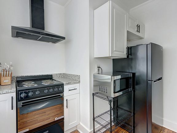 This apartment was renovated 2 years ago and is in great shape - very modern bathroom, new appliances in kitchen, and plenty of space to securely hold your bicycle or scooter inside. Laundry units are shared with other tenants but there are several laundry units where you won't have to wait on anyone.
