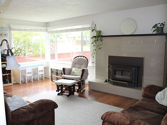Centrally located, well maintained bungalow! Features timeless updates: Laminate flooring, kitchen cabinets, corian countertops, tile fireplace w/ insert. Efficient layout boasts built in cabinets, spacious utility-mud room, & basement storage. Fully wood fenced yard, concrete BBQ space, dog run, & detached garage w/ door opener.