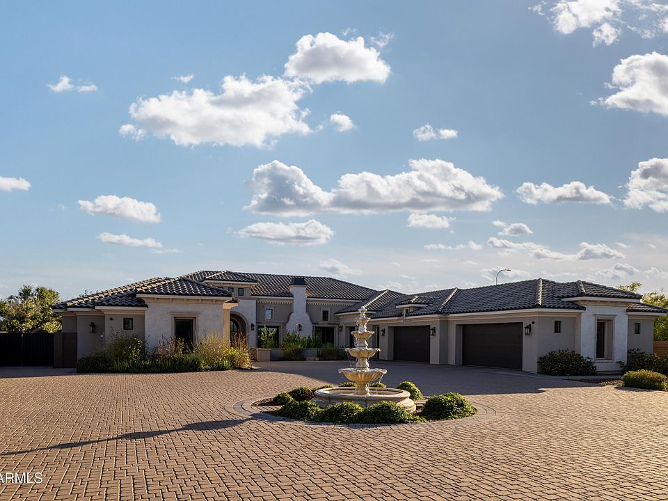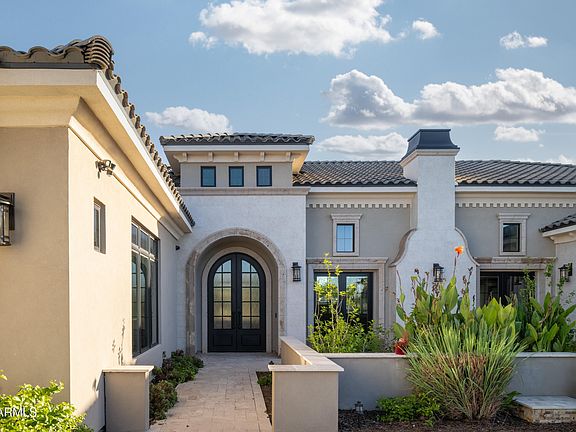 Here is an opportunity to own an absolutely exceptional 6,435 square foot custom estate that is located in one of Chandler's most desirable gated communities, Avalon. Set on over an acre of beautifully landscaped grounds, this single level residence offers 4 bedrooms and 6 bathrooms. The home combines elegance and thoughtful design for comfortable luxury living. Inside, vaulted ceilings, tile flooring, and dual pane windows create a bright and open atmosphere. The expansive great room features a fireplace and connects to a library with built in bookcases, a media room, bonus or game room, exercise or sauna room, and a private workshop. A separate den or office provides additional space for work or study. The gourmet kitchen includes granite countertops, multiple built in gas ovens, a gas cooktop, dishwasher, refrigerator, disposal, reverse osmosis system, walk in pantry, and eat in dining area. Designed for both entertaining and everyday living, the kitchen flows easily into the main gathering spaces. The primary suite offers a spacious layout with a full bath, separate soaking tub and shower, double vanity, private toilet room, and walk in closet. A private exit leads directly to the outdoor living areas. The backyard is designed for relaxation and entertainment with a heated outdoor pool, private heated spa, built in barbecue, covered patios, misting system, sport court, and beautifully maintained landscaping with automatic irrigation systems in the front and back yards. The property also features a balcony and private courtyard areas for additional outdoor enjoyment. A circular driveway leads to the attached four car garage, with additional slab parking for three vehicles and an electric vehicle charging station. Additional highlights include no interior steps, zero grade entry for accessibility, a water softener system, an inside laundry room with washer and dryer included, and the security of a private gated community.