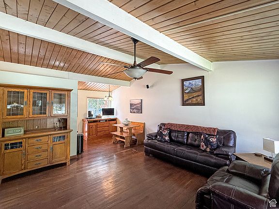 Charming and budget-friendly, this inviting 2-bedroom, 1-bath home sits on Ogden's desirable East Bench. Featuring beautiful cedar ceilings, hardwood flooring, a brand-new roof, and a recently installed central A/C unit, it's full of character and comfort. Natural light floods the space through skylights and large windows, while the Trex deck, two spacious storage sheds, and a private backyard create a peaceful outdoor retreat. Ideally located close to hiking trails, parks, shopping, and schools. Plus, the washer, dryer, and refrigerators are all included making this home move-in ready! Square footage figures are provided as a courtesy estimate only and were obtained from public record. Buyer is advised to obtain an independent measurement.