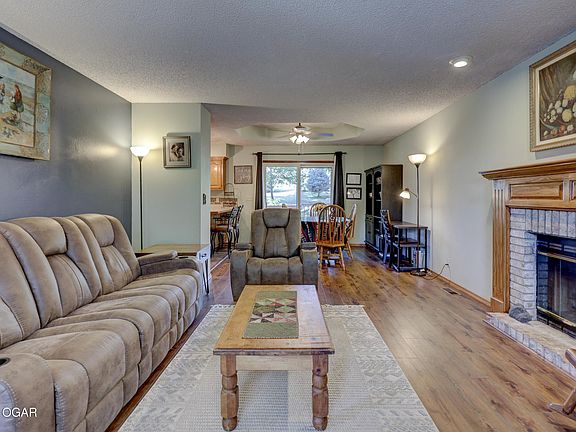 The main-level primary suite boasts a beautifully updated en-suite bathroom with a walk-in shower and plenty of natural light. Enjoy cozy evenings in the inviting living room with a gas fireplace, ideal for relaxing or entertaining guests.